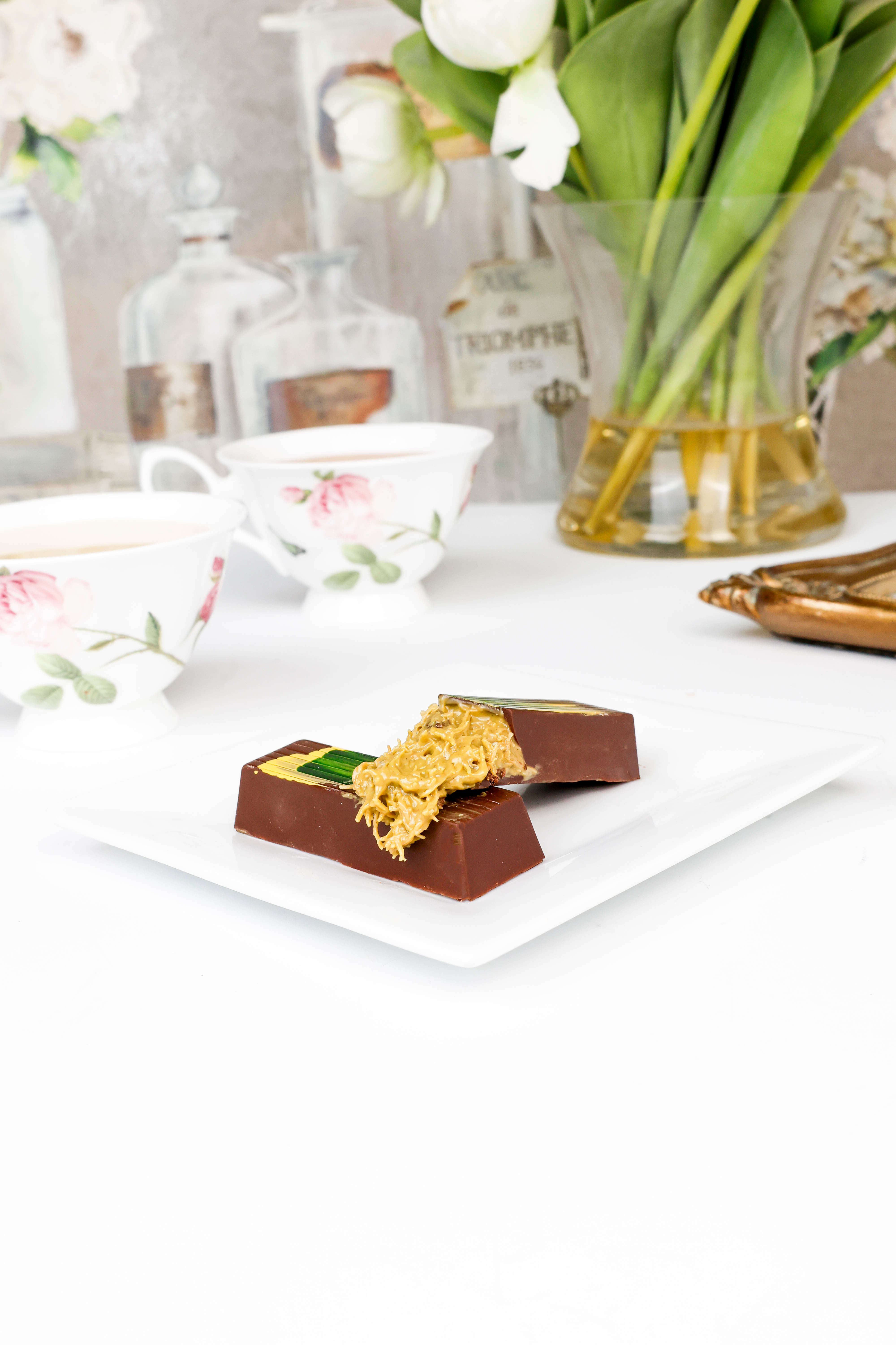 A decadent dark chocolate bar with a creamy pistachio and praline filling, finished with the delicate crunch of Kataifi pastry (a type of Middle Eastern pastry made from very thin, thread-like strands of dough, often described as shredded filo dough). Each package contains 2 bars of each flavor!